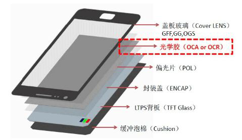 OCA(Optically Clear Adhesive)光學(xué)膠是觸摸屏的原材料之一,通過(guò)將光學(xué)丙烯酸壓敏膠做成無(wú)基材,然后在上下底層各貼一層光學(xué)離型薄膜做成雙面貼合膠帶,是一種無(wú)基體材料的雙面貼合膠帶,具有高潔凈度、高透光率、低霧度、高粘著力、無(wú)晶點(diǎn)、無(wú)氣泡、耐水性、耐高溫、抗紫外線等優(yōu)點(diǎn),并且其厚度均勻平整度高,與玻璃、PC、PMMA 折射率接近,長(zhǎng)時(shí)間使用不會(huì)產(chǎn)生黃化、老 化、發(fā)霧、脫離被粘表面及發(fā)生氣泡等問(wèn)題。
